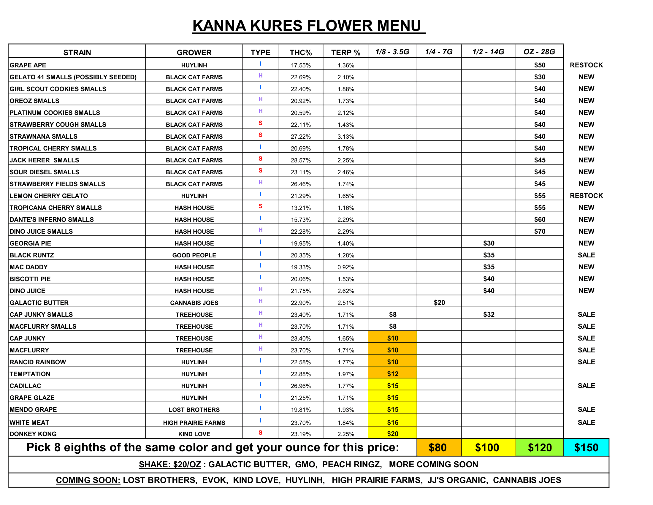 We update our flower menu frequently.